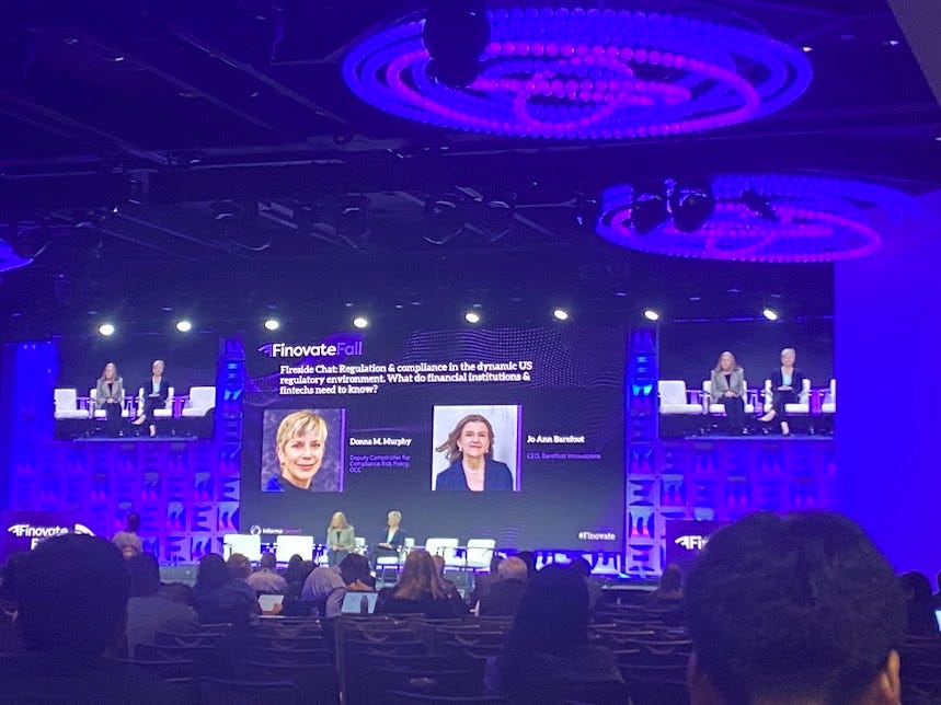On paper this seemed like an exciting discussion. You had JoAnn Barefoot who is a powerful voice in the fintech/banking/payments space with her past as a regulator and experience shaping policy, and her current work at Alliance for Innovative Regulation. And you also had Donna Murphy who is the deputy comptroller at the OCC.